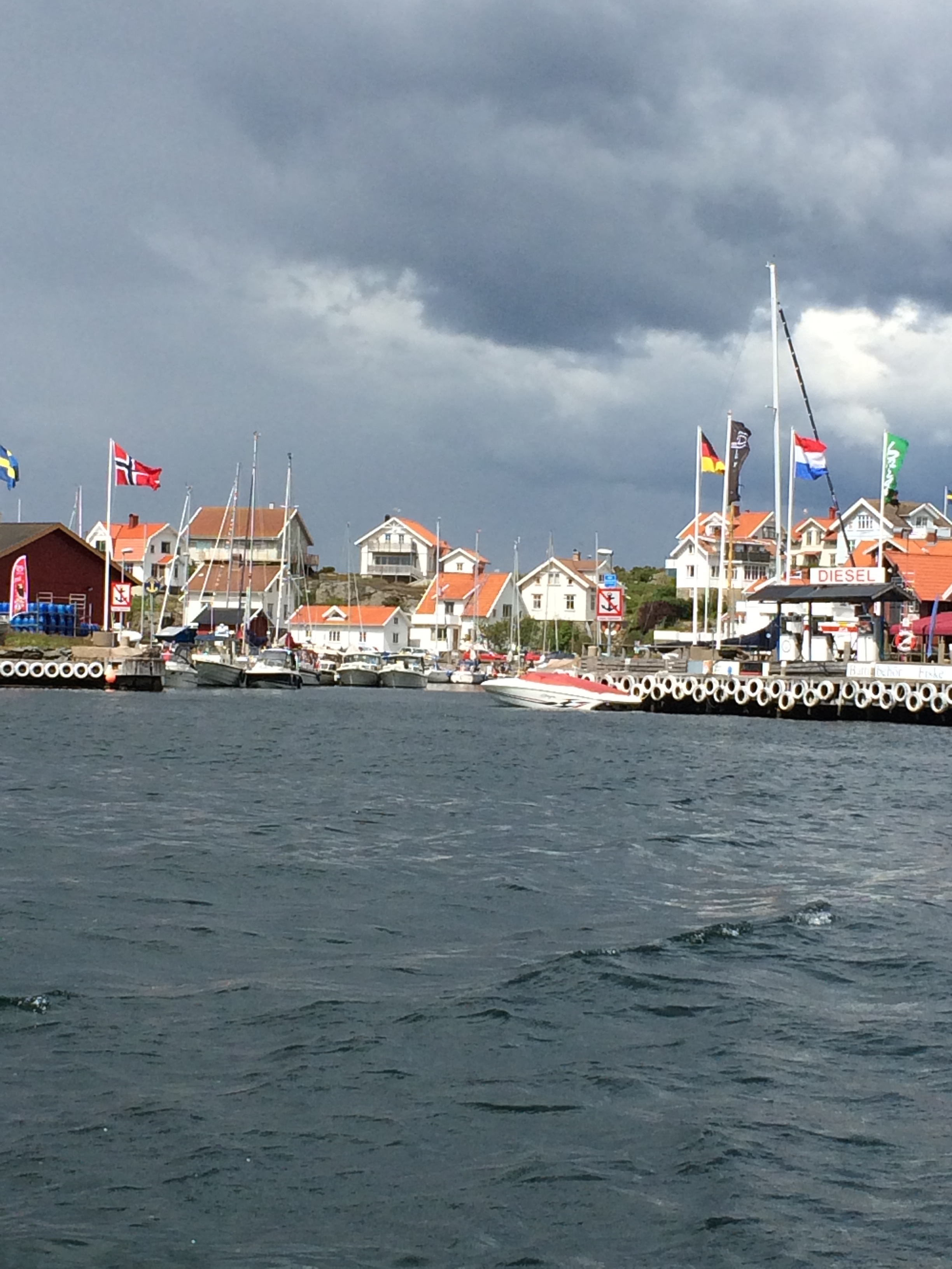 The writer in me sees it anyway. We weren’t disappointed either. We have always managed to find just the right spot. This time, we were tucked into a lovely bay with only a few sailboat neighbours moored on the opposite side. We didn’t discover them until we hiked to the top of the rocks to get a view of paradise. And boy, were we met with a view—the brightest rainbow I’ve ever seen. We stood in awe as it slowly wrapped around a lovely seaside town called Lysekil. I’m sure our neighbours in the distance we watching it, too. Of course being Canadian, I enjoyed for a few moments kidding myself that we could go without Swedish traditional Midsummer food being on our own out at sea. NO! Forget that, Susan! As soon as we set the anchor, had our little trek,